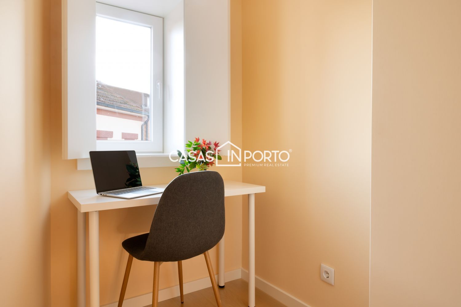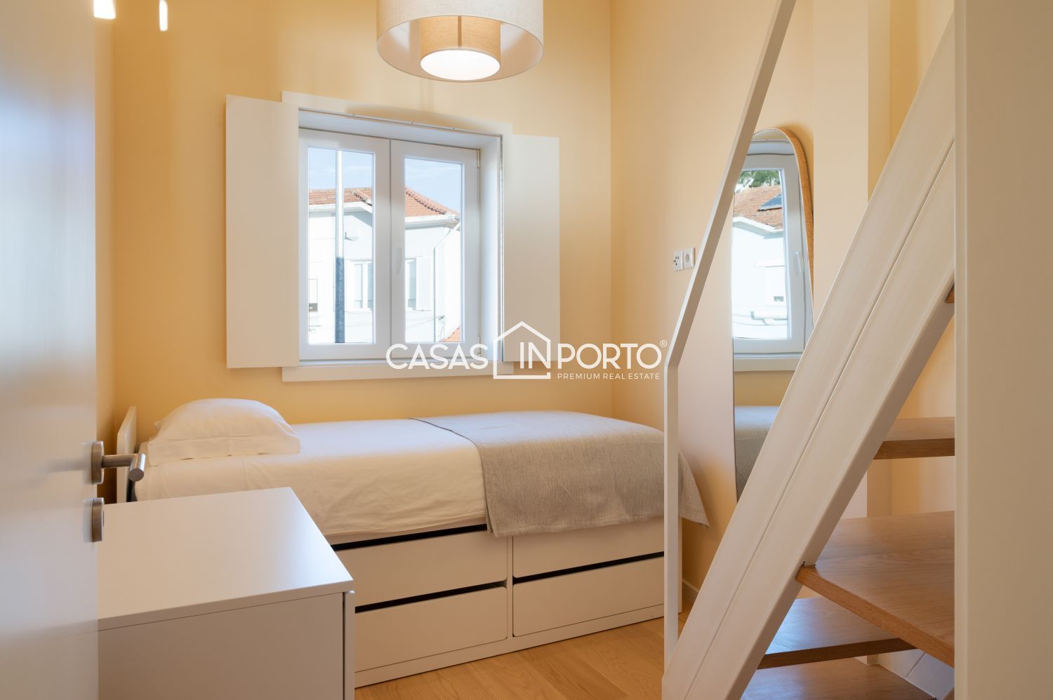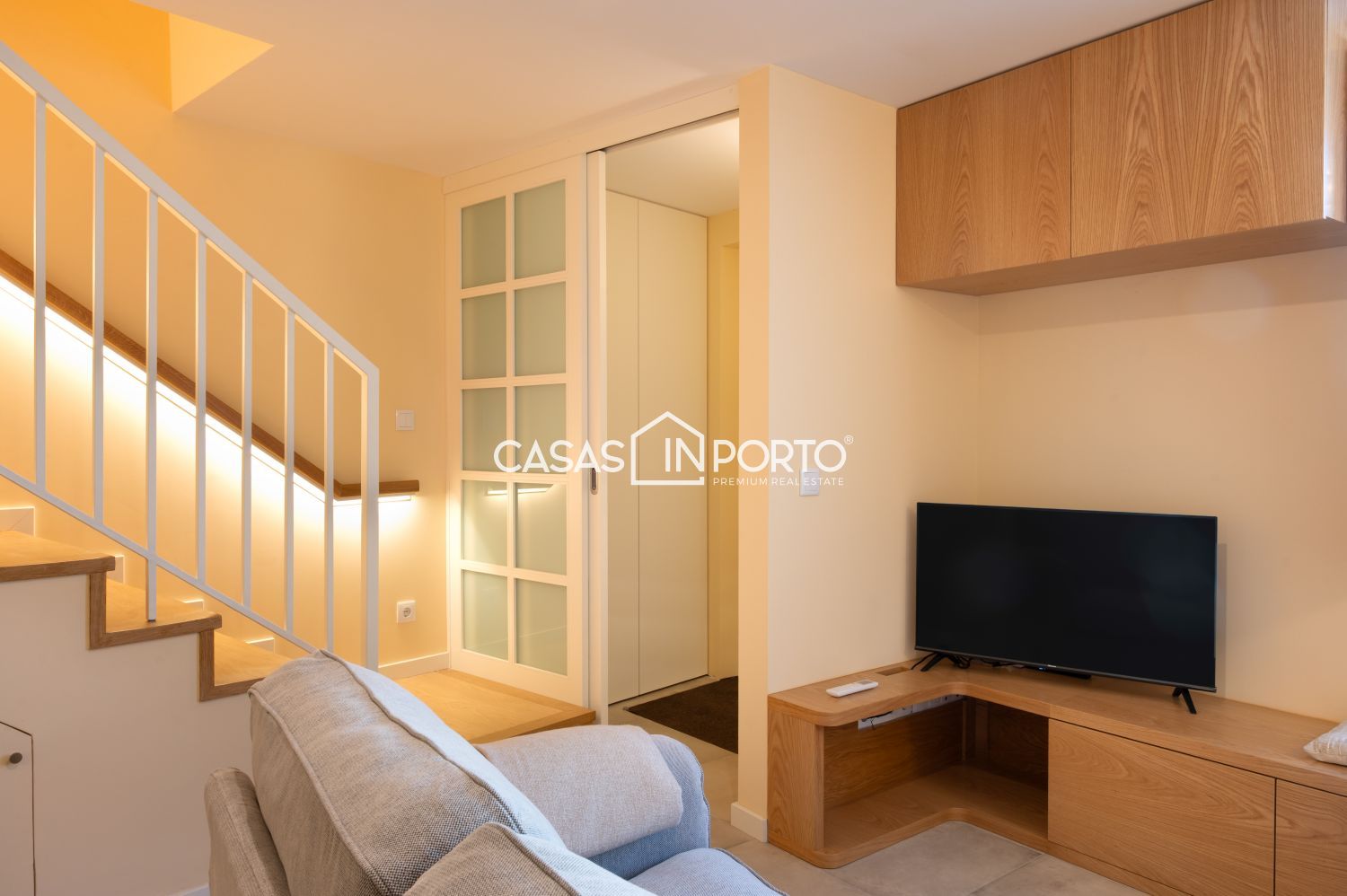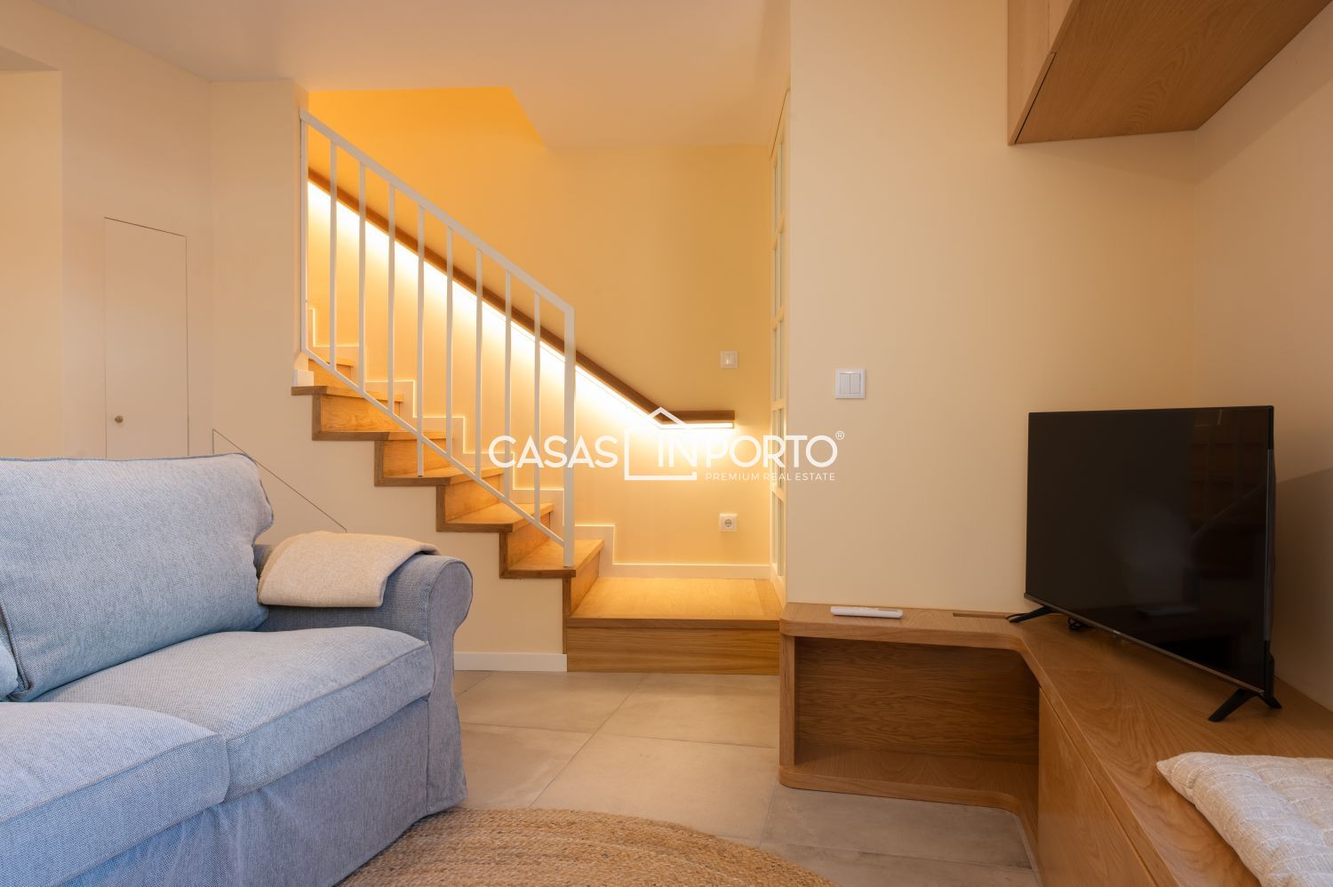 Moradia T2 para arrendamento no Campo Alegre. Moradia reabilitada, localizada no Campo Alegre. Moradia com 2 quartos, sala, cozinha e 2 casas de banho. Com área exterior na frente da casa e terraço junto aos quartos. Mobilada e totalmente equipada. Televisão e louças. Cozinha com placa, forno/ microondas, exaustor, frigorifico, máquina lavar louça, máquina lavar e secar roupa. Ar condicionado e bomba de calor. Muita arrumação. Carpintarias lacadas. Quartos com mezzanine possibilitando zona de trabalhado. CASAS IN PORTO - THE BEST IN CLASS