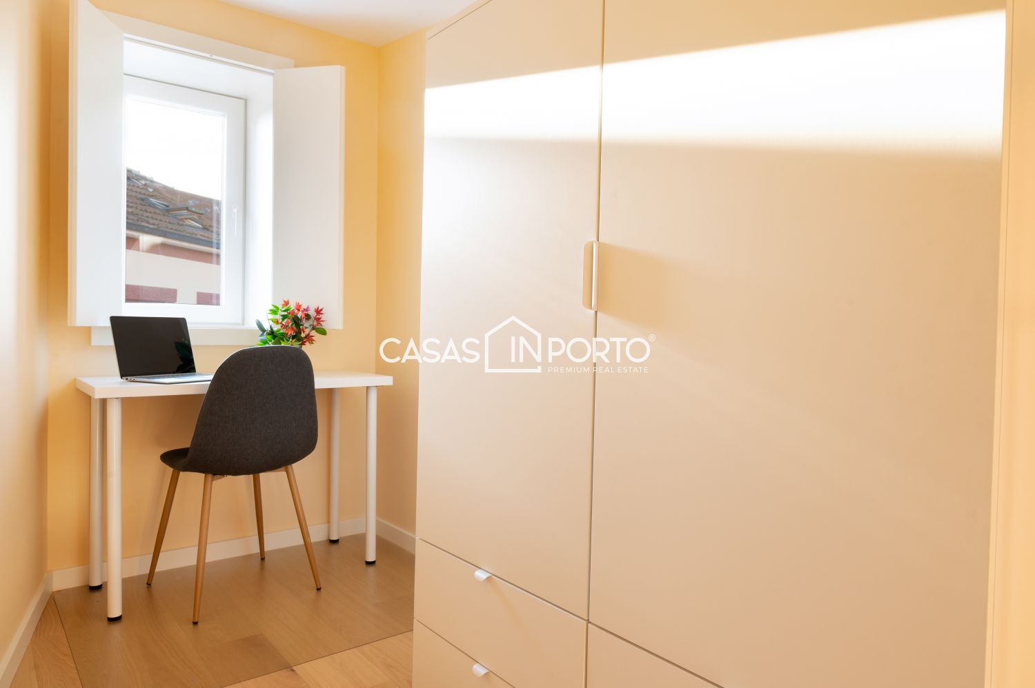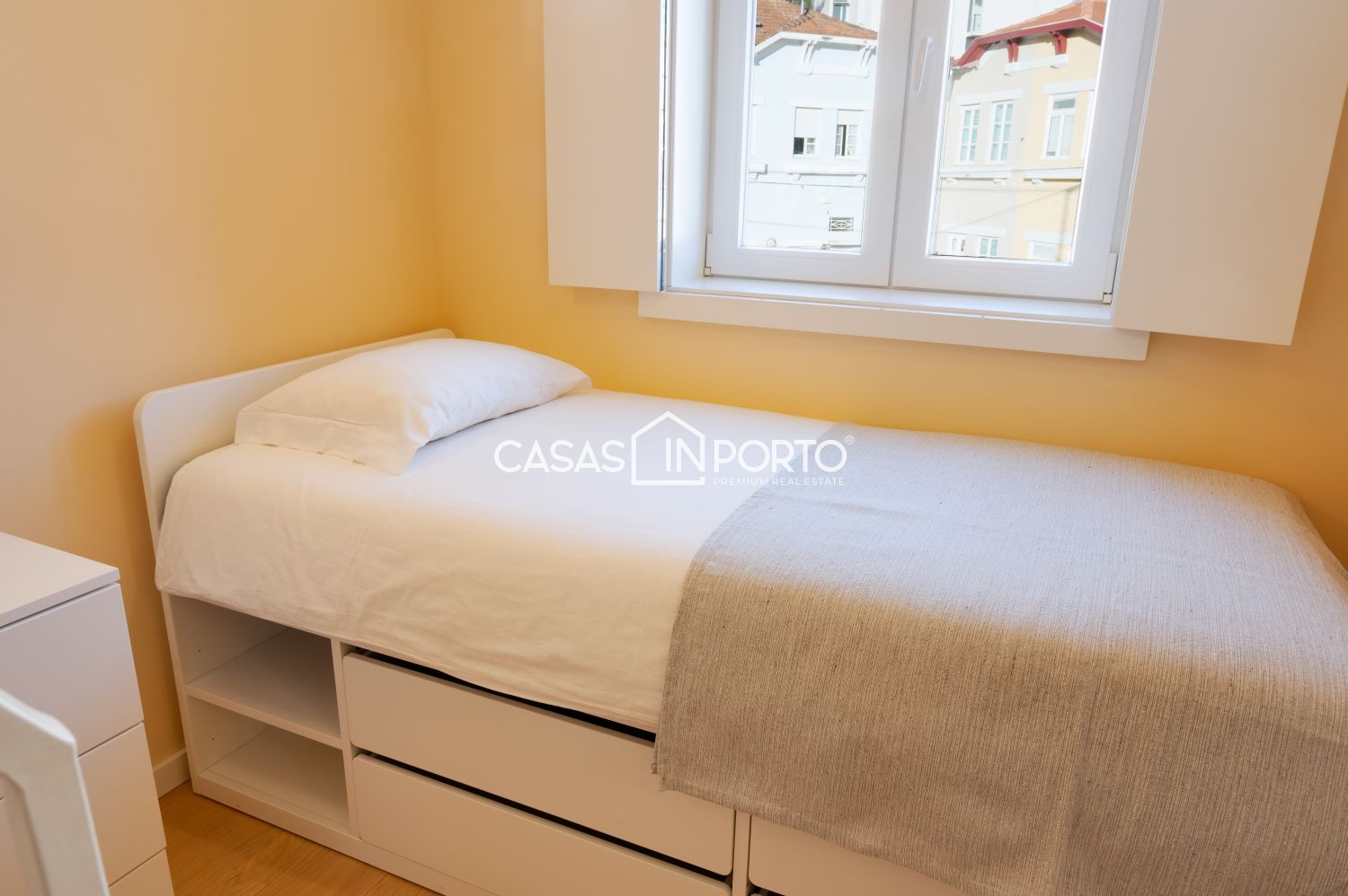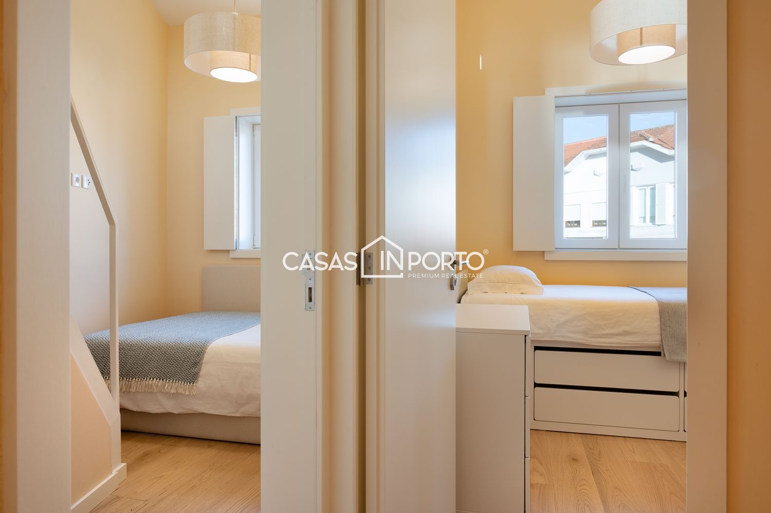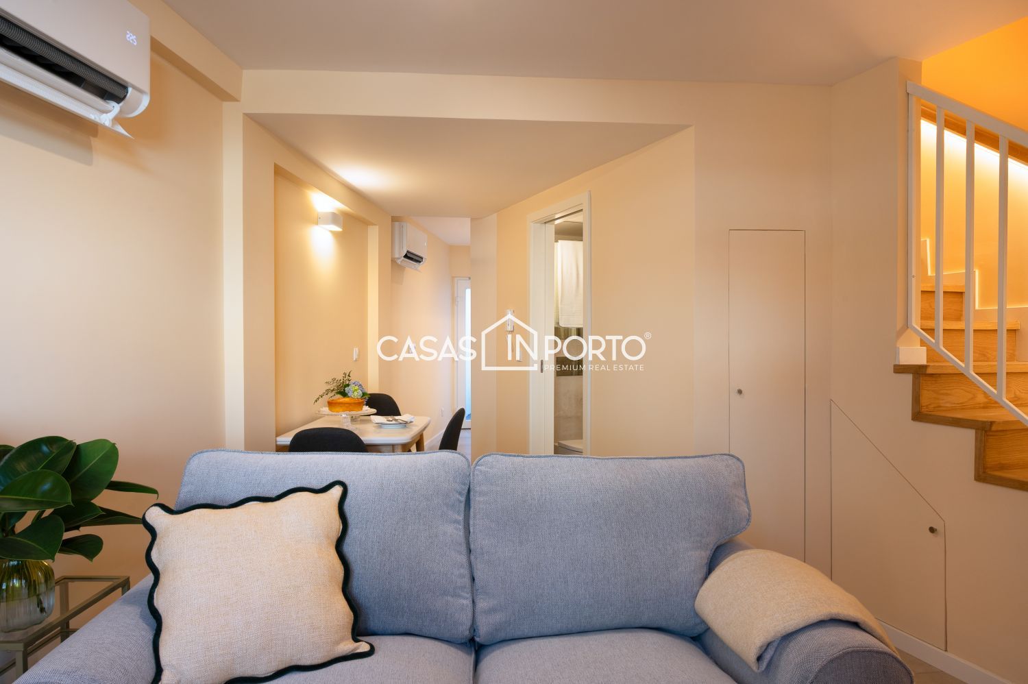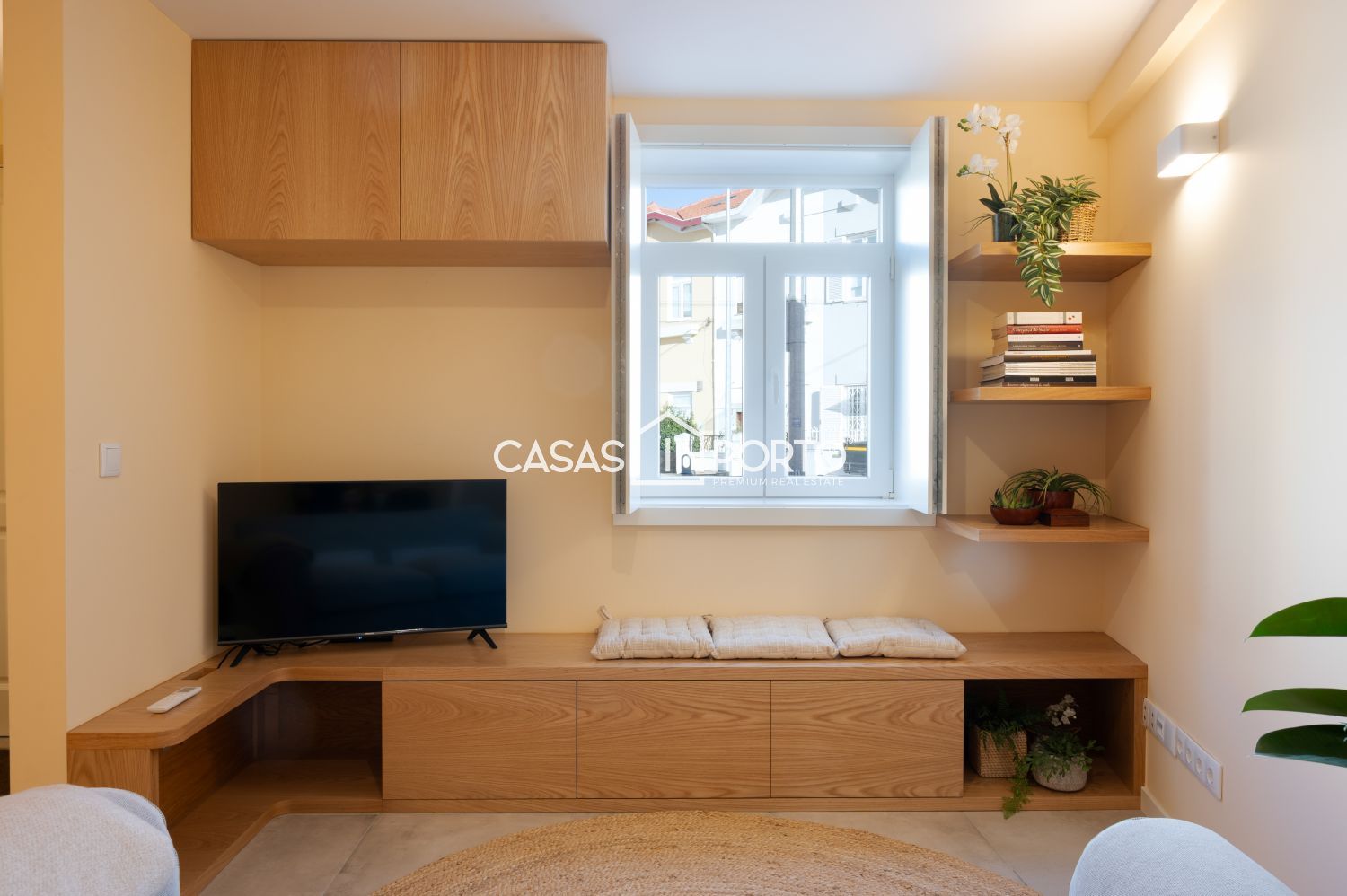 Moradia T2 para arrendamento no Campo Alegre. Moradia reabilitada, localizada no Campo Alegre. Moradia com 2 quartos, sala, cozinha e 2 casas de banho. Com área exterior na frente da casa e terraço junto aos quartos. Mobilada e totalmente equipada. Televisão e louças. Cozinha com placa, forno/ microondas, exaustor, frigorifico, máquina lavar louça, máquina lavar e secar roupa. Ar condicionado e bomba de calor. Muita arrumação. Carpintarias lacadas. Quartos com mezzanine possibilitando zona de trabalhado. CASAS IN PORTO - THE BEST IN CLASS