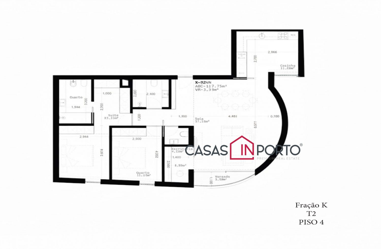 - Suite com roupeiro embutido, garantindo privacidade e espaço de arrumação;