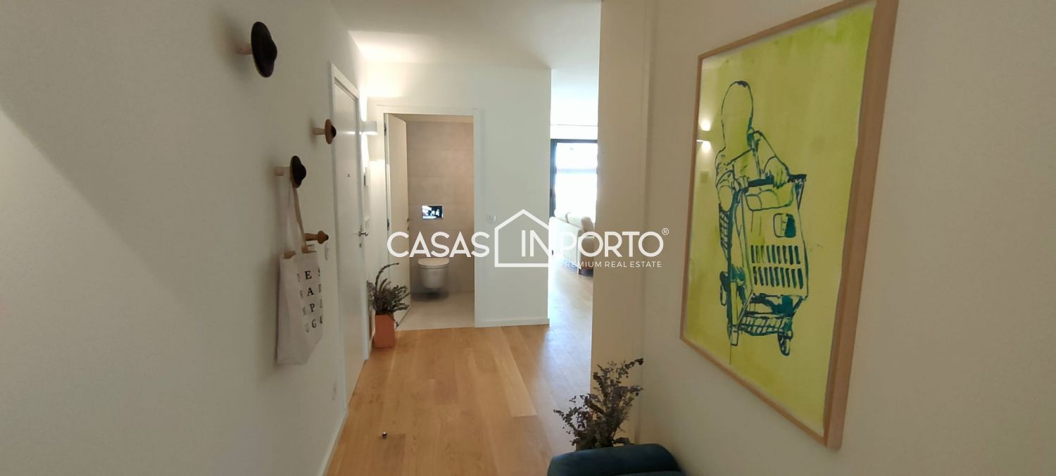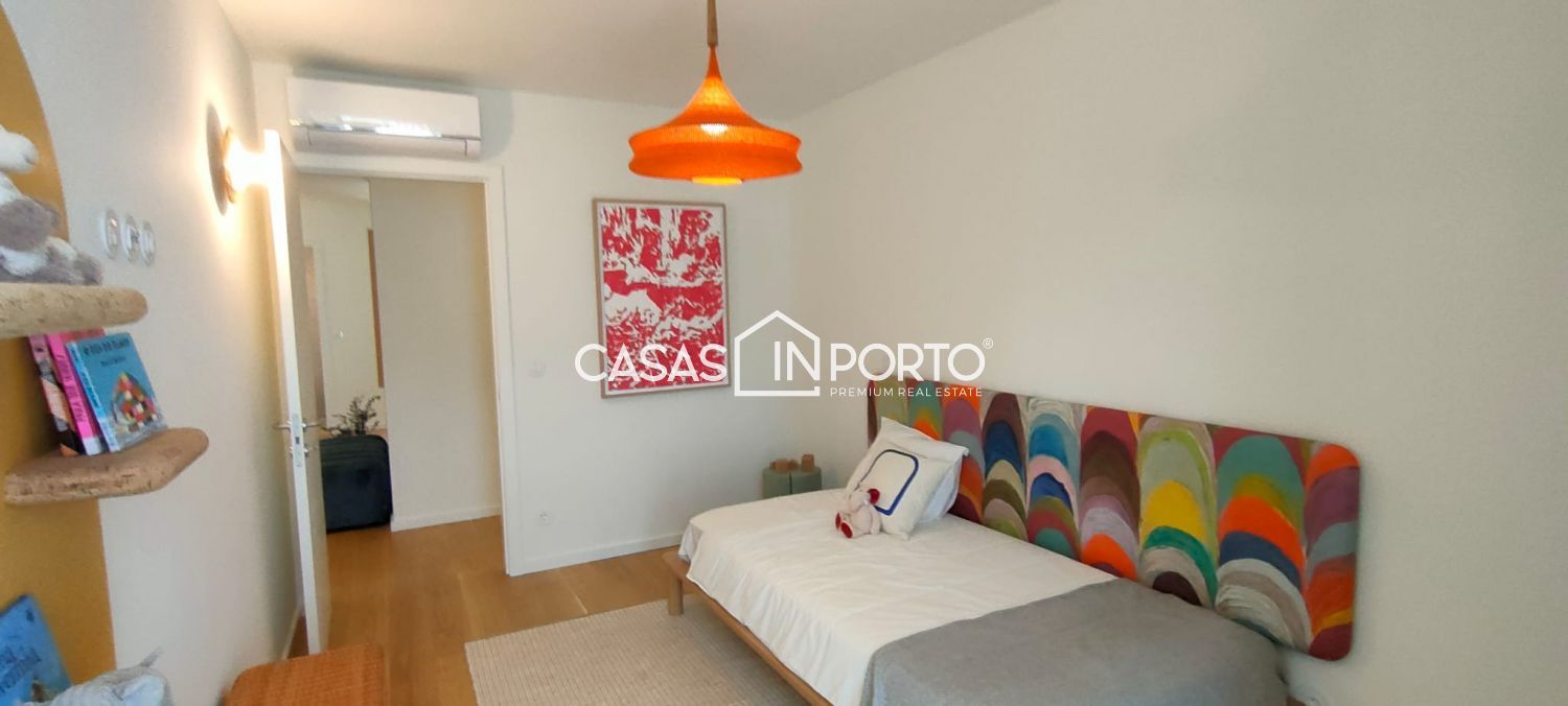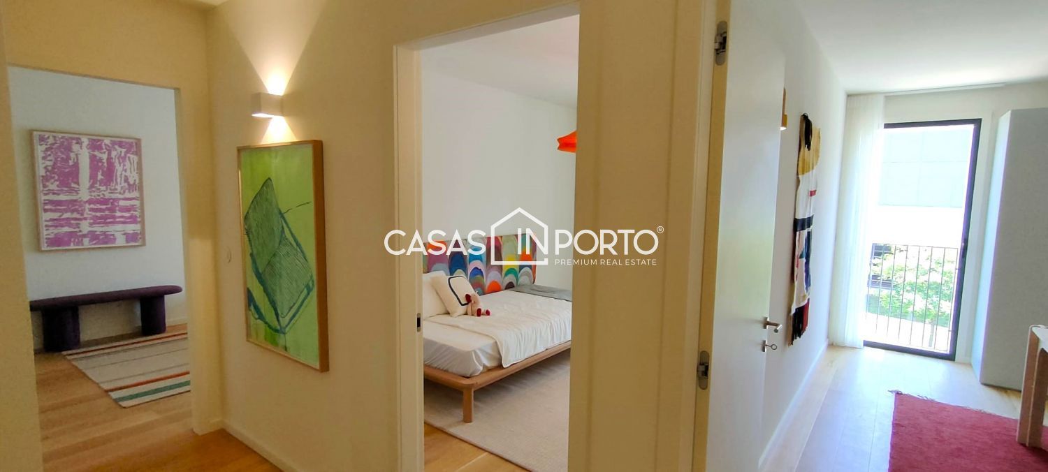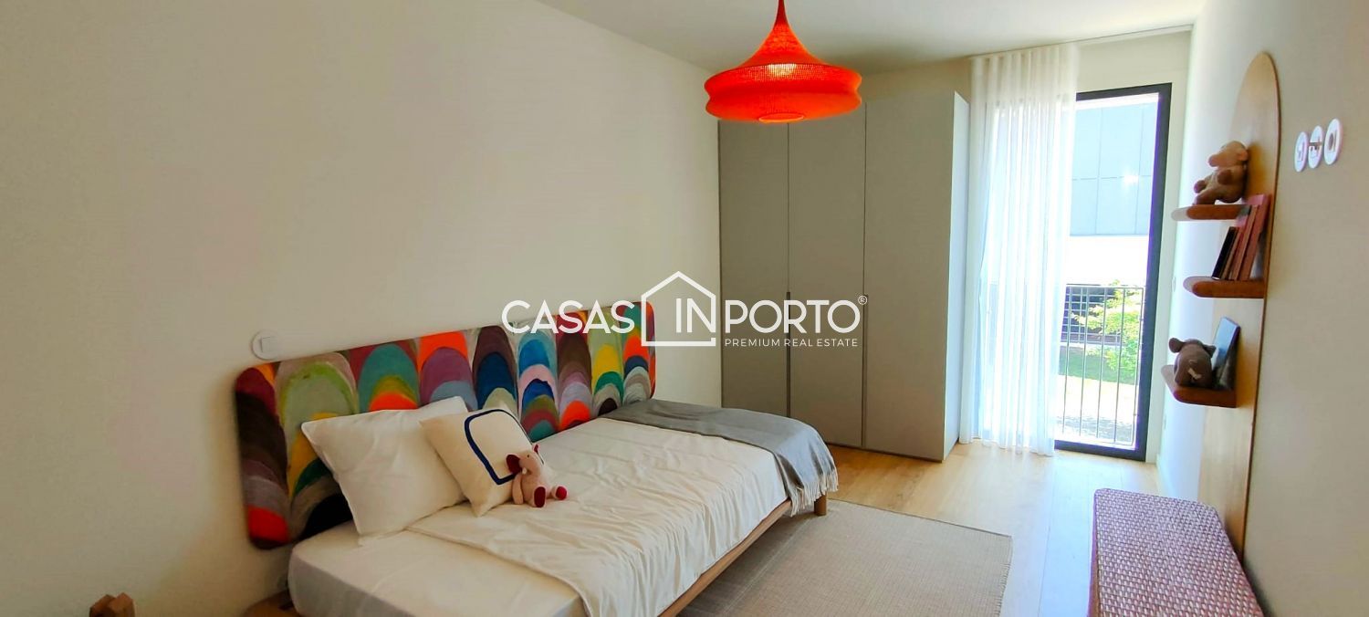 T3 de luxo com 2 lugares de garagem e vistas de mar Condomínio privado que prima pela atenção nos detalhes, oferecendo um ambiente familiar e dinâmico, onde o equilíbrio entre a natureza, a arquitetura e na inovação assumem especial importância, permitindo uma qualidade de vida superior. Constituído por: - Hall de entrada; - Sala de jantar/sala de estar com excelentes áreas e acesso à varanda; - Cozinha em open space, totalmente equipada; - 3 quartos sendo 1 suite com closet e acesso à varanda; - 2 WC'S completos; - 1 WC de serviço; - Lavandaria; - Varanda; - 2 Lugar de garagem; - Arrumos com 10m2. - Localização privilegiada com acessos rápidos; - Sustentabilidade na escolha dos materiais e técnicas de construção; - Zonas comuns com Lounge/Coworking, Piscina Exterior e Campo de Padel, beneficiando de um fabuloso jardim com 5000 m2 cuidadosamente projetado, envolvido por uma atmosfera de serenidade e paz. Os sons suaves da natureza e a visão tranquilizadora proporcionam uma sensação de equilíbrio e bem-estar. Áreas cujo horizonte doméstico é ampliado, graças aos extensos espaços exteriores. (área média das varandas: 11m2). CASAS IN PORTO - THE BEST IN CLASS