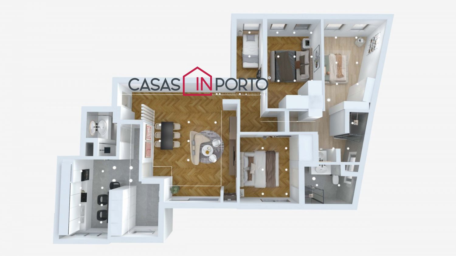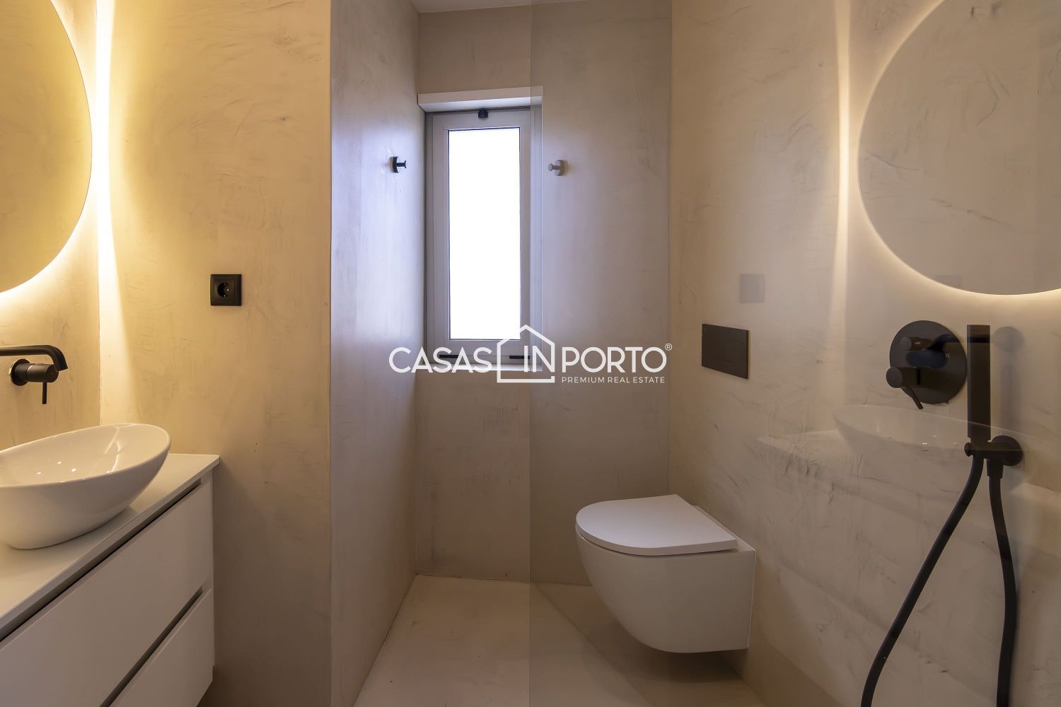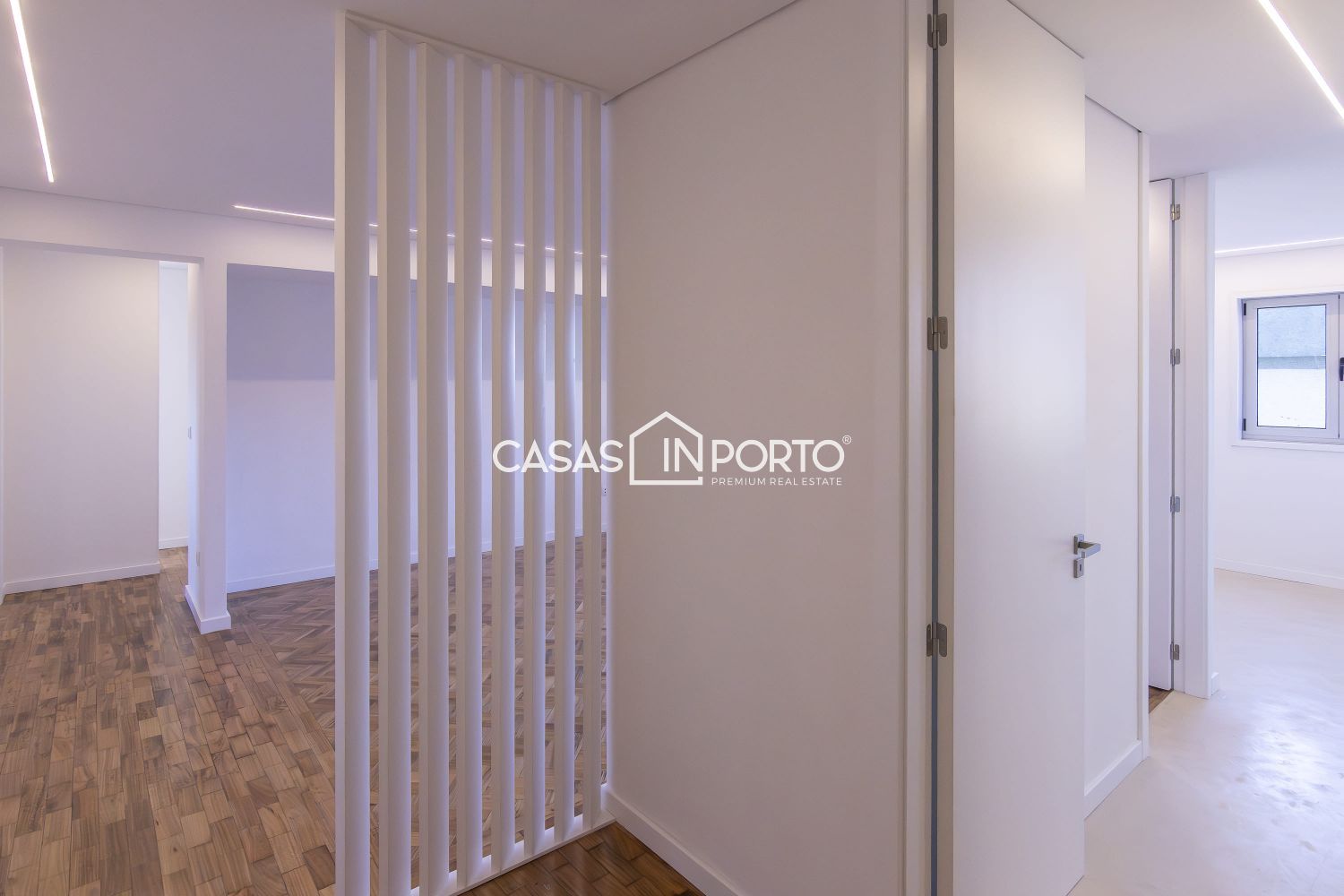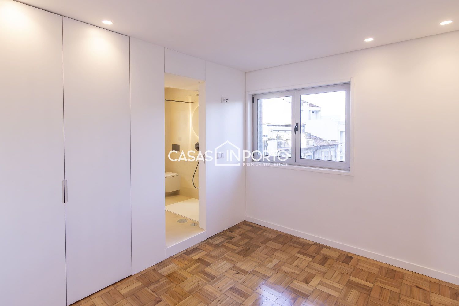 T4 de luxo junto à estação de metro da Trindade Apartamento com uma excelente localização, no coração da cidade do Porto. Oferece uma oportunidade única de viver ou investir num dos locais mais privilegiados da cidade. Localizado na zona ARU (Área de Reabilitação Urbana) da cidade do Porto, com um conjunto de inúmeras vantagens associadas, nomeadamente ao nível de isenções de pagamento de IMT e IMI, etc... Decorre o processo de licenciamento na Câmara Municipal do Porto, que conferirá em breve a este imóvel a Licença de Alojamento Local. Com domótica, fechadura inteligente, estores e outros equipamentos que permitem aceder à habitação em qualquer parte do mundo. Este imóvel resulta da reabilitação de um apartamento com 150 m2 que combinam na perfeição a arquitetura moderna com a identidade histórica da propriedade. Beneficia de uma localização central com fácil acesso a transportes públicos (estação de metro da Trindade a 100mts/Faria Guimarães 150mts), incluindo autocarros e outras estações de metro, bem como a proximidade de supermercados, e serviços. Situa-se apenas a 5 minutos a pé da Avenida dos Aliados/Praça da Liberdade. Vista deslumbrante sobre a cidade, diurna e noturna, devido à sua localização e piso elevado; Inserido em prédio urbano, composto por 6 andares com 2 elevadores; 4º andar do prédio o que confere uma excelente luminosidade devido à sua muito boa exposição solar, com a frente virada a Sul. O apartamento é composto por 3 frentes. Constituído pelas seguintes divisões: 4 Quartos; 3 WC totalmente completos; 2 quartos com suíte; 2 Hall; 1 Sala; 1 Cozinha; 1 Copa; Todos os Quartos com roupeiros embutidos em madeira lacada branca, com portas de abrir e interiores em linho; 2 Suites fantásticas com louças suspensas, base de duche em pedra em resina natural, misturadoras embutidas nas paredes; mecanismos de chuveiro igualmente embutidos; A Cozinha encontra-se equipada com eletrodomésticos de encastre (novos): Placa de indução, Forno, Exaustor e Micro-Ondas; Os móveis são de excelente qualidade, lacados de cor branco/mate; O tampo é em pedra nobre da marca Silestone branco; Pavimento em Microcimento natural, que confere a este imóvel grande modernidade, elegância e ao mesmo tempo grande resistência e durabilidade; Copa: Divisão de apoio à cozinha, onde estão colocados os 2 termoacumuladores que servem de aquecimento das águas da habitação e também a colocação de máquina de lavar roupa e secagem; os equipamentos inserem-se no interior de móveis igualmente lacados, conferindo estética e descrição a este espaço. Pré Instalação de Ar condicionado. Máquinas colocadas no interior dos tetos falsos. Caixilharia em alumínio Termolacado cinza, com Vidro Duplo e com sistema de Oscilobatente; Lugar de garagem no Piso -1; Prédio mantem a traça tradicional com revestimento em pastilha. CASAS IN PORTO - THE BEST IN CLASS
