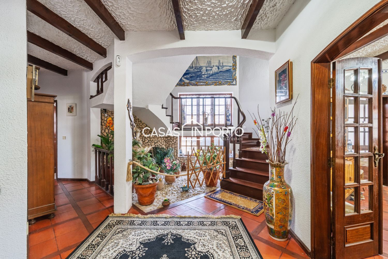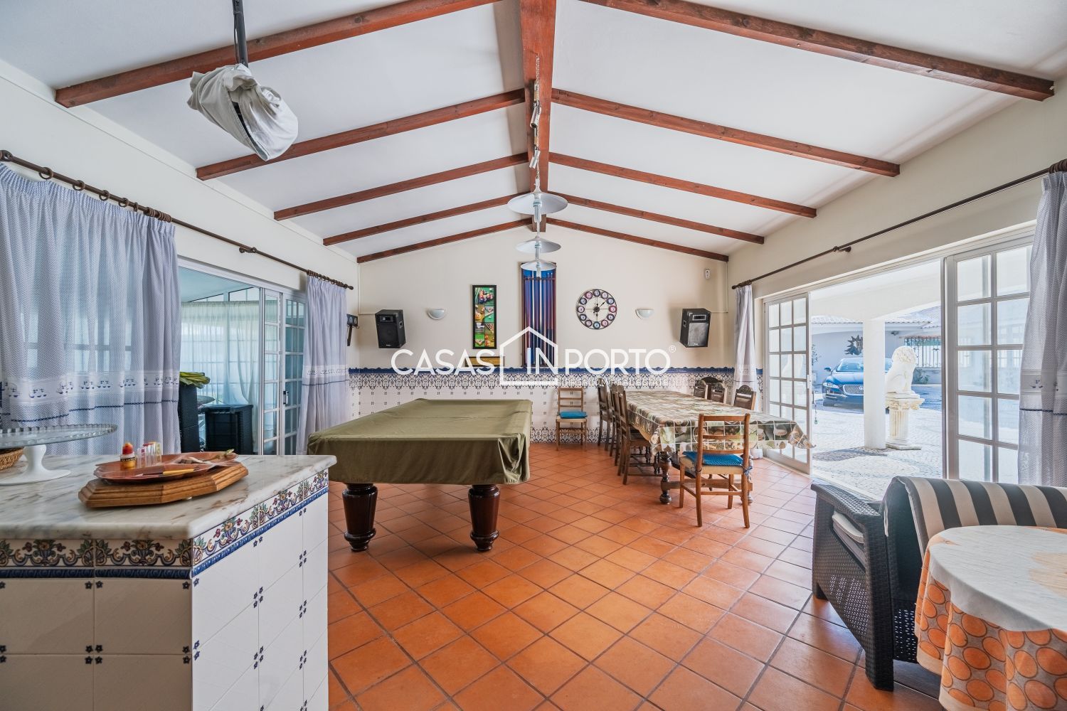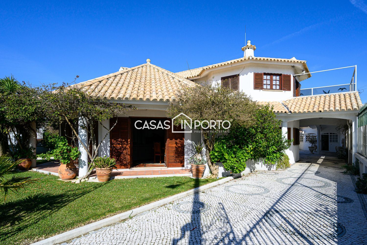Moradia V6 com Piscina e Campo de Ténis – Entre a Ria e o Mar - Aveiro Situada na Gafanha da Nazaré (Ílhavo), destaca-se pela sua arquitetura de inspiração americana e pela generosidade das suas áreas. Com uma localização privilegiada a escassos minutos das praias (Barra e Costa Nova), o imóvel oferece o equilíbrio perfeito entre o conforto residencial e o potencial para investimento turístico ou de eventos. A moradia desenvolve-se em dois pisos de forma funcional e harmoniosa: - Piso Principal (R/C): Composto por um hall de entrada acolhedor, cozinha equipada, um elegante salão, bar, roupeiro e dois quartos. Destaque para o jardim interior que confere uma luminosidade única ao espaço e o alpendre com passagem coberta que liga as áreas sociais. - Piso Superior (Sótão Aproveitado): Inclui hall de distribuição, dois quartos adicionais, casa de banho completa e um terraço privativo com fonte, ideal para momentos de relaxamento. O jardim é um verdadeiro centro de bem-estar, contando com: - Piscina privativa, campo de ténis e ginásio. - Dependências totalmente equipadas com sala de estar, cozinha, chuveiros e sanitários, garantindo total autonomia à zona da piscina. - A existência de um apartamento independente permite o acolhimento de convidados com total autonomia ou a exploração para rendimento imediato. - Equipada com ar condicionado, garantindo uma climatização ideal em qualquer estação do ano. - Estacionamento coberto para 4 veículos. O amplo jardim meticulosamente projetado e a fonte no terraço reforçam a atmosfera de serenidade da propriedade. Potencial de Expansão: A venda inclui um terreno adjacente, garantindo flexibilidade para futuros desenvolvimentos ou manutenção da total privacidade. Oportunidade rara no mercado de Aveiro, seja para habitação própria ou para um projeto comercial de prestígio, unindo a proximidade ao mar com uma infraestrutura de lazer incomparável. CASAS IN PORTO - THE BEST IN CLASS
