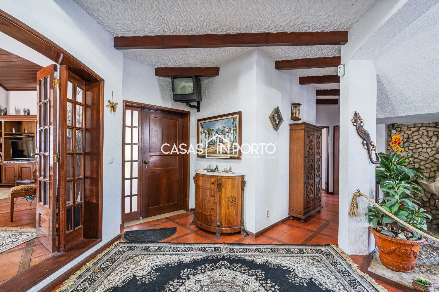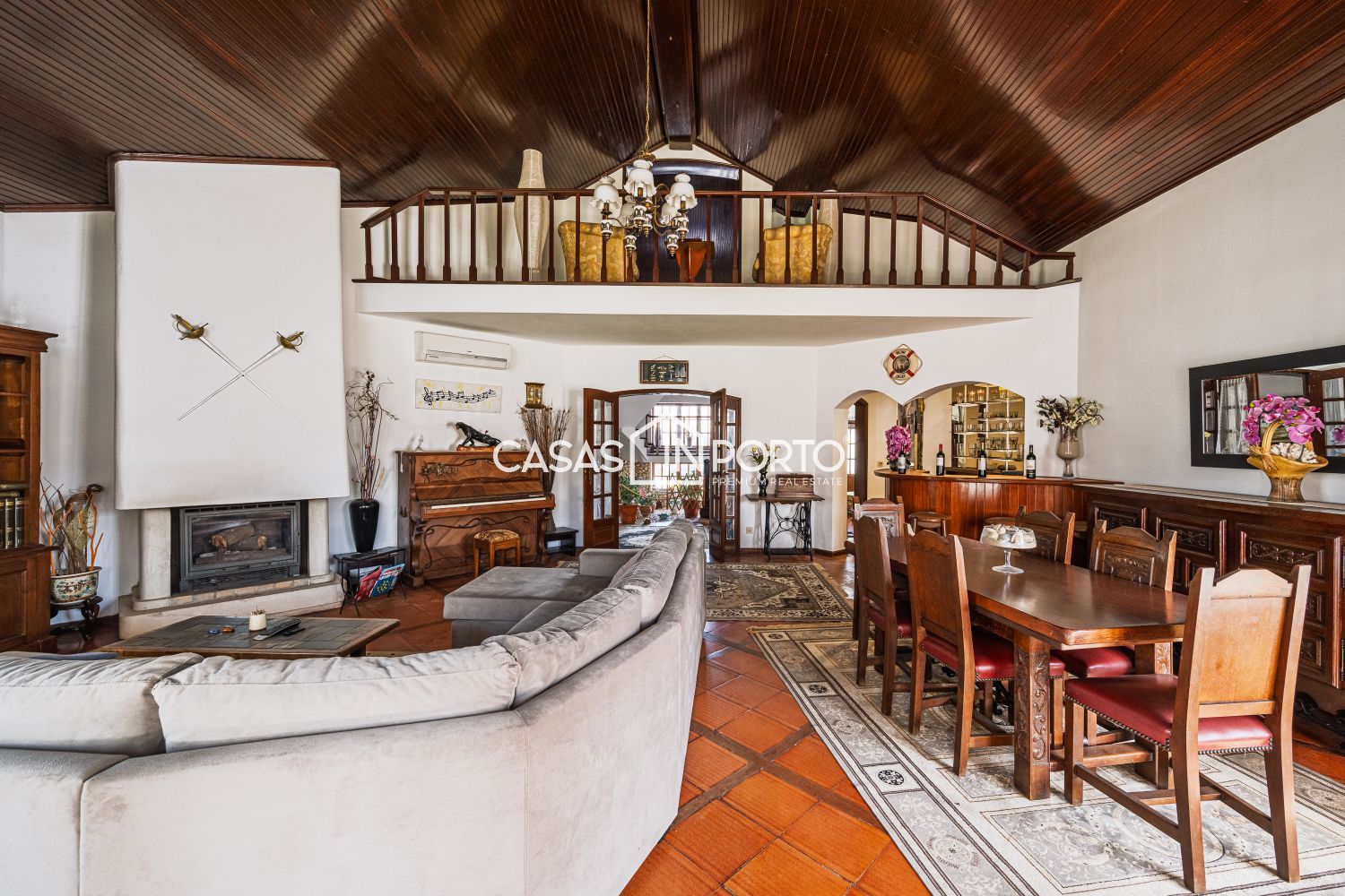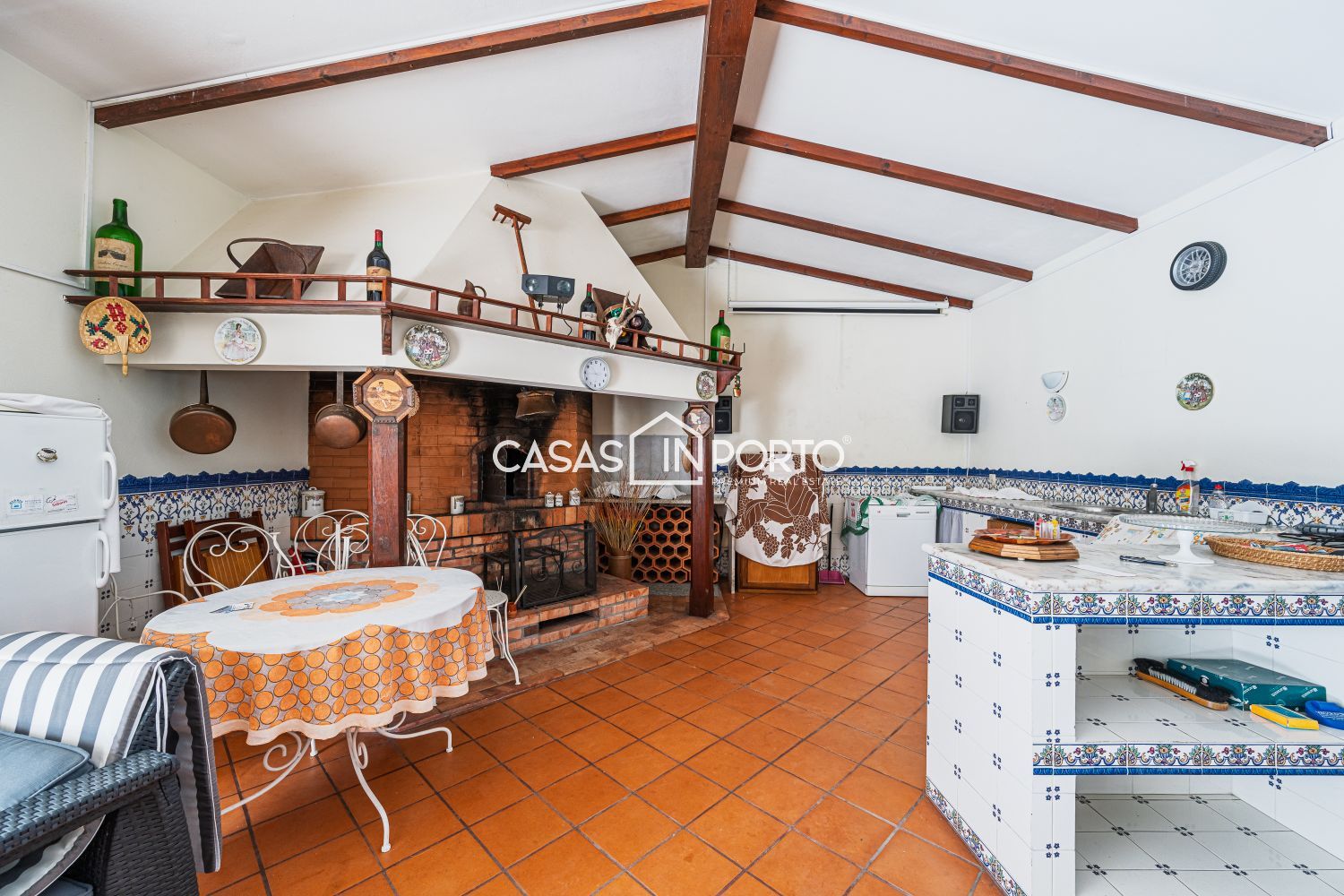 Moradia V6 com Piscina e Campo de Ténis – Entre a Ria e o Mar - Aveiro Situada na Gafanha da Nazaré (Ílhavo), destaca-se pela sua arquitetura de inspiração americana e pela generosidade das suas áreas. Com uma localização privilegiada a escassos minutos das praias (Barra e Costa Nova), o imóvel oferece o equilíbrio perfeito entre o conforto residencial e o potencial para investimento turístico ou de eventos. A moradia desenvolve-se em dois pisos de forma funcional e harmoniosa: - Piso Principal (R/C): Composto por um hall de entrada acolhedor, cozinha equipada, um elegante salão, bar, roupeiro e dois quartos. Destaque para o jardim interior que confere uma luminosidade única ao espaço e o alpendre com passagem coberta que liga as áreas sociais. - Piso Superior (Sótão Aproveitado): Inclui hall de distribuição, dois quartos adicionais, casa de banho completa e um terraço privativo com fonte, ideal para momentos de relaxamento. O jardim é um verdadeiro centro de bem-estar, contando com: - Piscina privativa, campo de ténis e ginásio. - Dependências totalmente equipadas com sala de estar, cozinha, chuveiros e sanitários, garantindo total autonomia à zona da piscina. - A existência de um apartamento independente permite o acolhimento de convidados com total autonomia ou a exploração para rendimento imediato. - Equipada com ar condicionado, garantindo uma climatização ideal em qualquer estação do ano. - Estacionamento coberto para 4 veículos. O amplo jardim meticulosamente projetado e a fonte no terraço reforçam a atmosfera de serenidade da propriedade. Potencial de Expansão: A venda inclui um terreno adjacente, garantindo flexibilidade para futuros desenvolvimentos ou manutenção da total privacidade. Oportunidade rara no mercado de Aveiro, seja para habitação própria ou para um projeto comercial de prestígio, unindo a proximidade ao mar com uma infraestrutura de lazer incomparável. CASAS IN PORTO - THE BEST IN CLASS