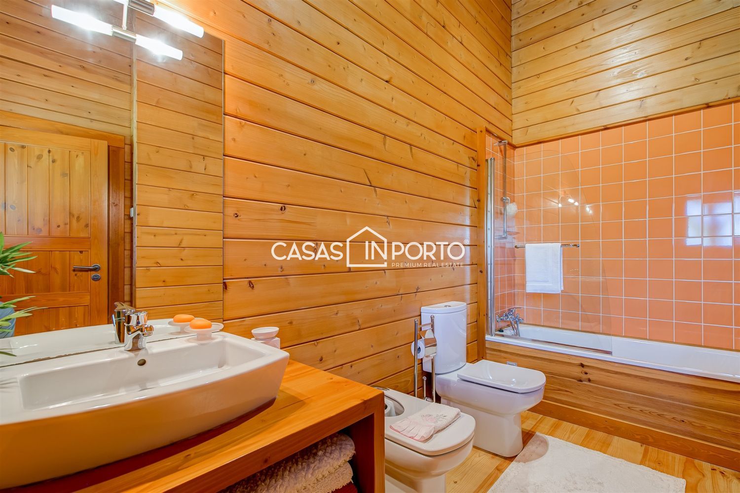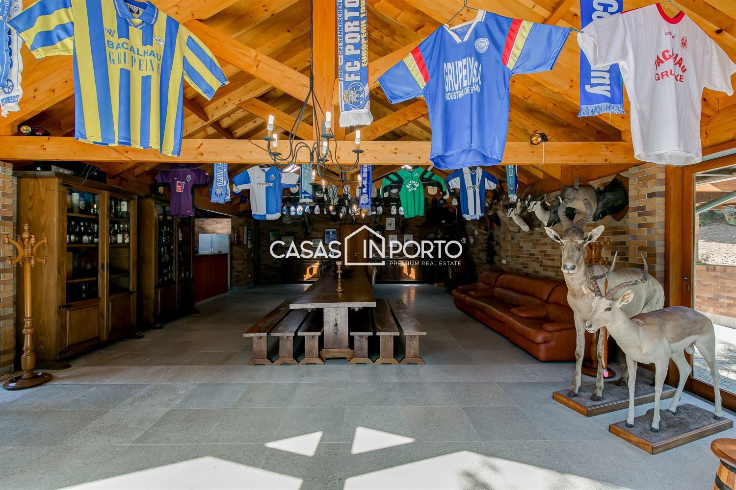 QUINTA DE LUXO A 30 MIN DO PORTO com PIP aprovado Uma verdadeira fortaleza com duas entradas distintas, ladeada por muros altos que conferem harmonia e total privacidade. Quinta é composta por: Casa senhorial de estilo inglês datada de 1938, com pormenores de arquitetura constituída por cave, rés do chão e primeiro piso. A casa apresenta excelente estado de conservação, construída com materiais nobres tais como mármores e madeiras exóticas aleadas ao requinte e design. Casa de Madeira de estilo nórdico, com a qualidade térmica e acústica representada por o seu método construtivo. Implementada e integrada com todas as divisões da casa orientadas para o jardim com um deck de apoio. Salão de festas composto por cozinha regional, adega, garrafeira climatizada, instalações sanitárias, terraço rodeada por diversas árvores centenárias. Todas as divisões contêm aquecimento feito através de ar-condicionado, radiadores de parede, salamandra e lareira. O jardim acompanha todas as divisões das casas. Capela centenária do estilo barroco composta por variados elementos que dão o efeito de intensa emoção e grandeza. As janelas com vitrais coloridos permitem a entrada de luz enaltecendo assim as diversas estátuas e elementos figurativos de arte sacra. Garagem fechada com portão automático para dez carros com zona de lavagem. Casa do Caseiro (anexo) de apoio aos funcionários (caseiros) e lavandaria. Campo de futebol e ténis. A Quinta Cachide contem outras caraterísticas que a classificam única tais como: - Duas minas de água e três furos artesanais para assegura a rega automática; - Toda a quinta está iluminada no exterior através de lanternas altas e clássicas; - Os percursos desenvolvem se através de pavimento de cubo de granito e calçada portuguesa; - Zona de cultivo de horta biológica e zona de floresta; - Criação de pequenos animais e pombal. É de salientar que todos os jardins estão bem cuidados. -A 40 m do Aeroporto Francisco Sá Carneiro; - A 2h40 m de Lisboa; - A 4h25 m de Vilamoura. CASAS IN PORTO - THE BEST IN CLASS